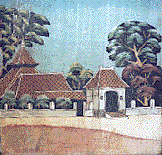 Figures and scenes come from the many rich story-telling traditions of Javanese culture. The Indonesian versions of the Indian Hindu epics, the Ramayana and the Mahabharata are loved throughout Java. Many of the paintings depict scenes from these two classics, often portrayed in the flat, elaborately detailed style of the wayang kulit shadow puppets.